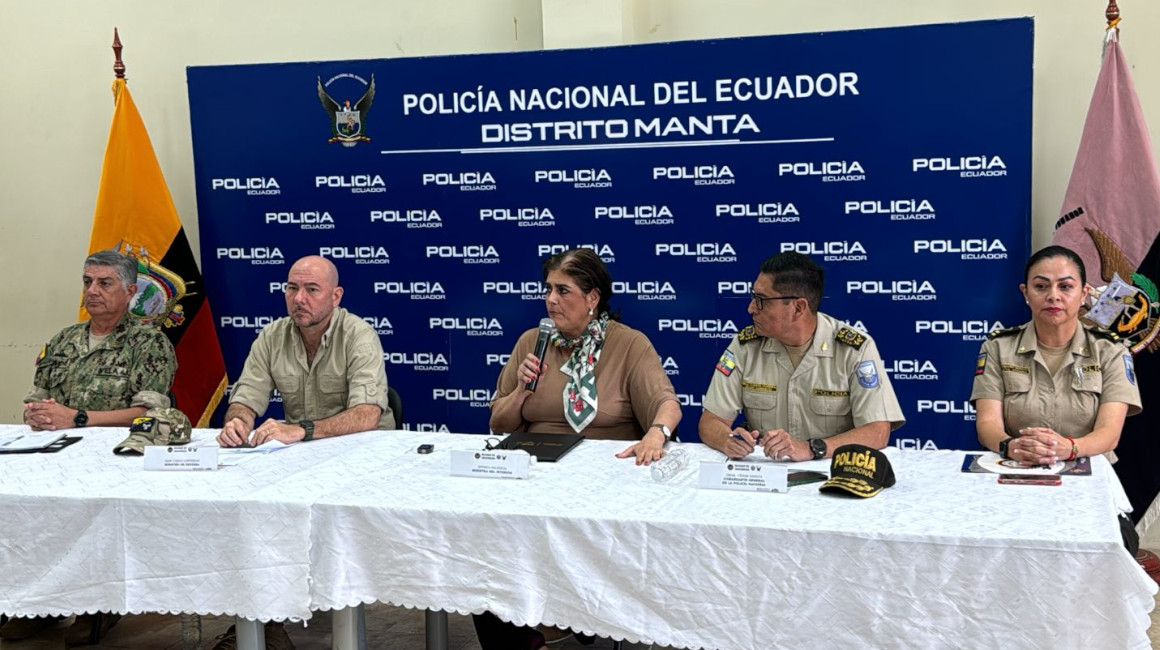 Los ministros Mónica Palencia, Gian Carlo Loffredo, así como el comandante de la Policía Nacional, César Zapata, dieron a conocer nuevos resultados del Bloque de Seguridad en Manta. La ministra del Interior indicó que se cumplen 10 días sin muertes violentas en Manta.