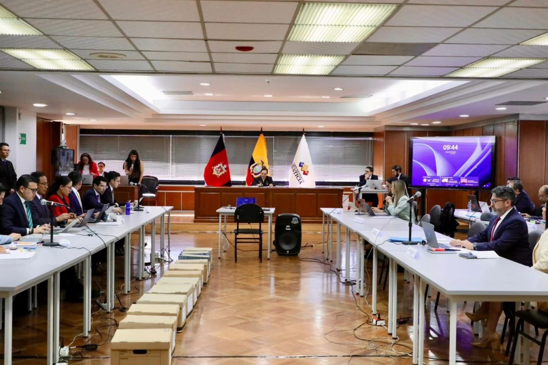 En la audiencia anterior, el fiscal subrogante Carlos Leonardo Alarcón presentó su dictamen acusatorio, en el que identificó tres posibles conductas ilícitas relacionadas con la justicia electoral, la designación de vocales del Consejo de la Judicatura y el nombramiento del titular de la Superintendencia de Bancos. Además, solicitó que los siete procesados sean llamados a juicio como autores.