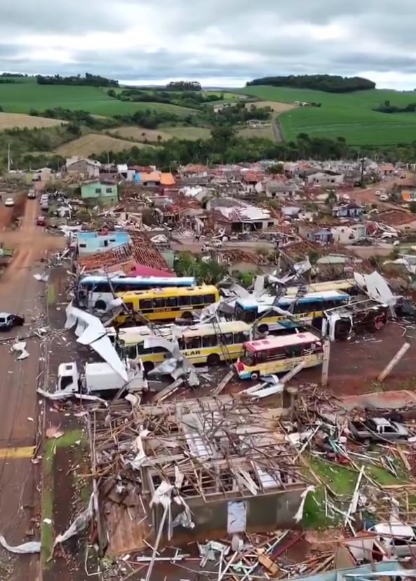 Río Bonito do Iguazú, en el centro sur del estado brasileño de Paraná, quedó prácticamente devastada luego del paso de un poderoso tornado el viernes 7. Imágenes aéreas grabadas por un dron muestran techos arrancados, casas derrumbadas, calles bloqueadas y un paisaje completamente transformado por la fuerza del fenómeno. La destrucción es tal que varias […]