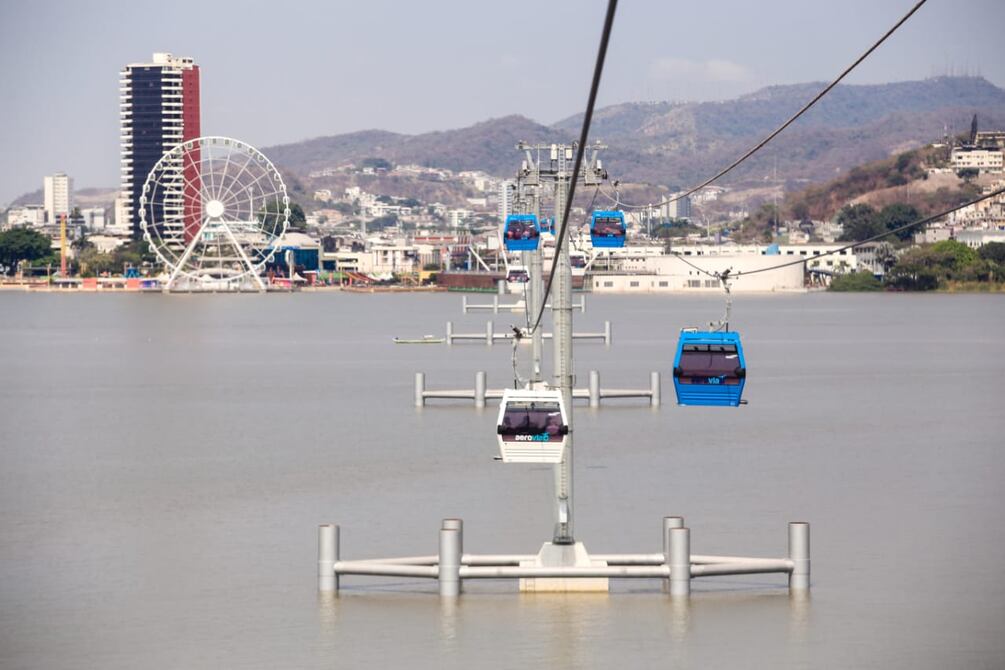 La Aerovía, inaugurada en 2020, conecta Guayaquil con Durán y cuenta con cinco estaciones y 154 cabinas. Actualmente registra una demanda inferior a la proyectada inicialmente.