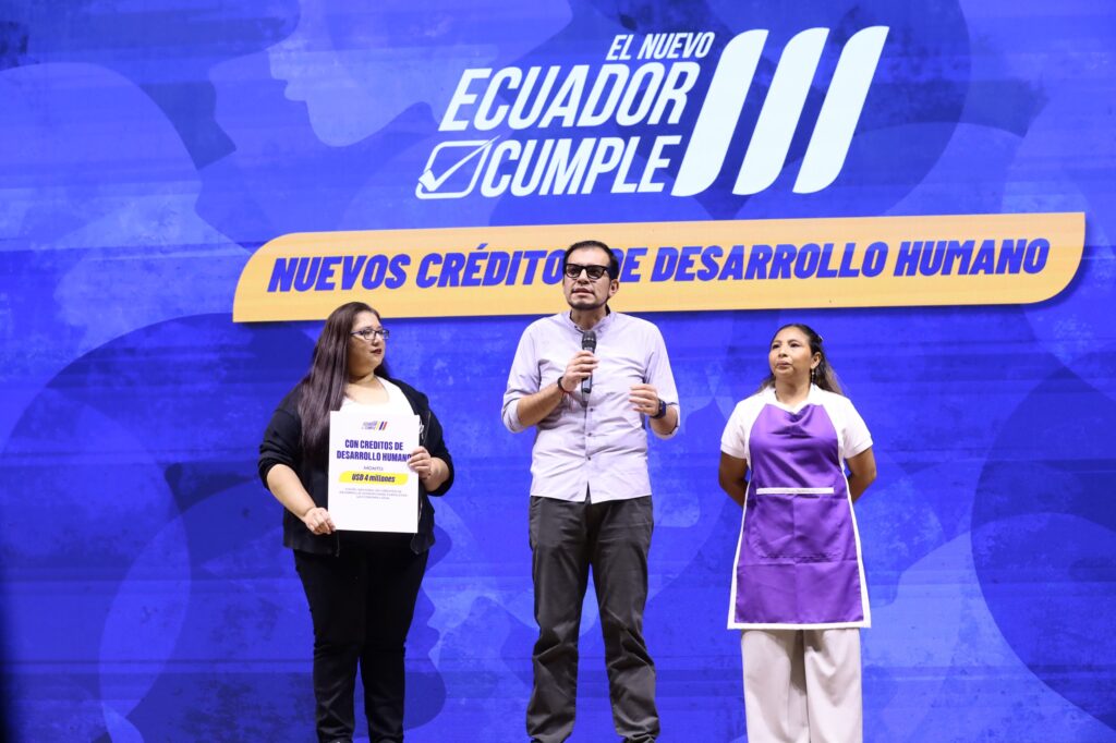 Por su parte, el ministro de Desarrollo Humano, Harold Burbano, explicó que los créditos beneficiarán a 3.600 hogares.