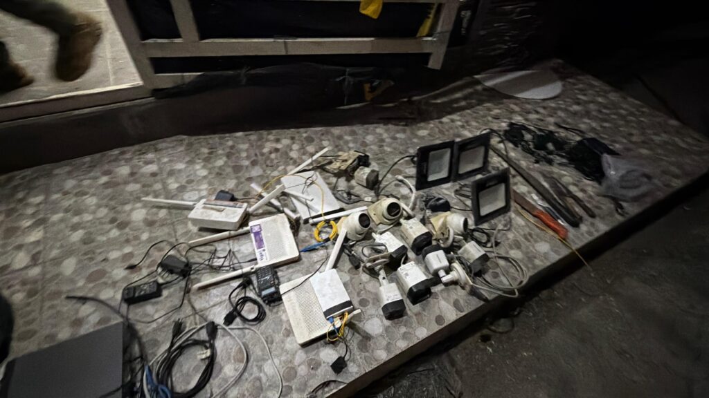 En el lugar se encontraron cámaras de videovigilancia tipo bala y domo, equipos de comunicación y transmisión de señal, módems de internet, un repetidor de señal, router, DVR, cableado coaxial y reflectores. Además, se hallaron armas blancas, municiones de distintos calibres, una gramera, una pipa artesanal y varias dosis de sustancias sujetas a fiscalización, elementos que eran utilizados para monitorear y controlar accesos en el sector.