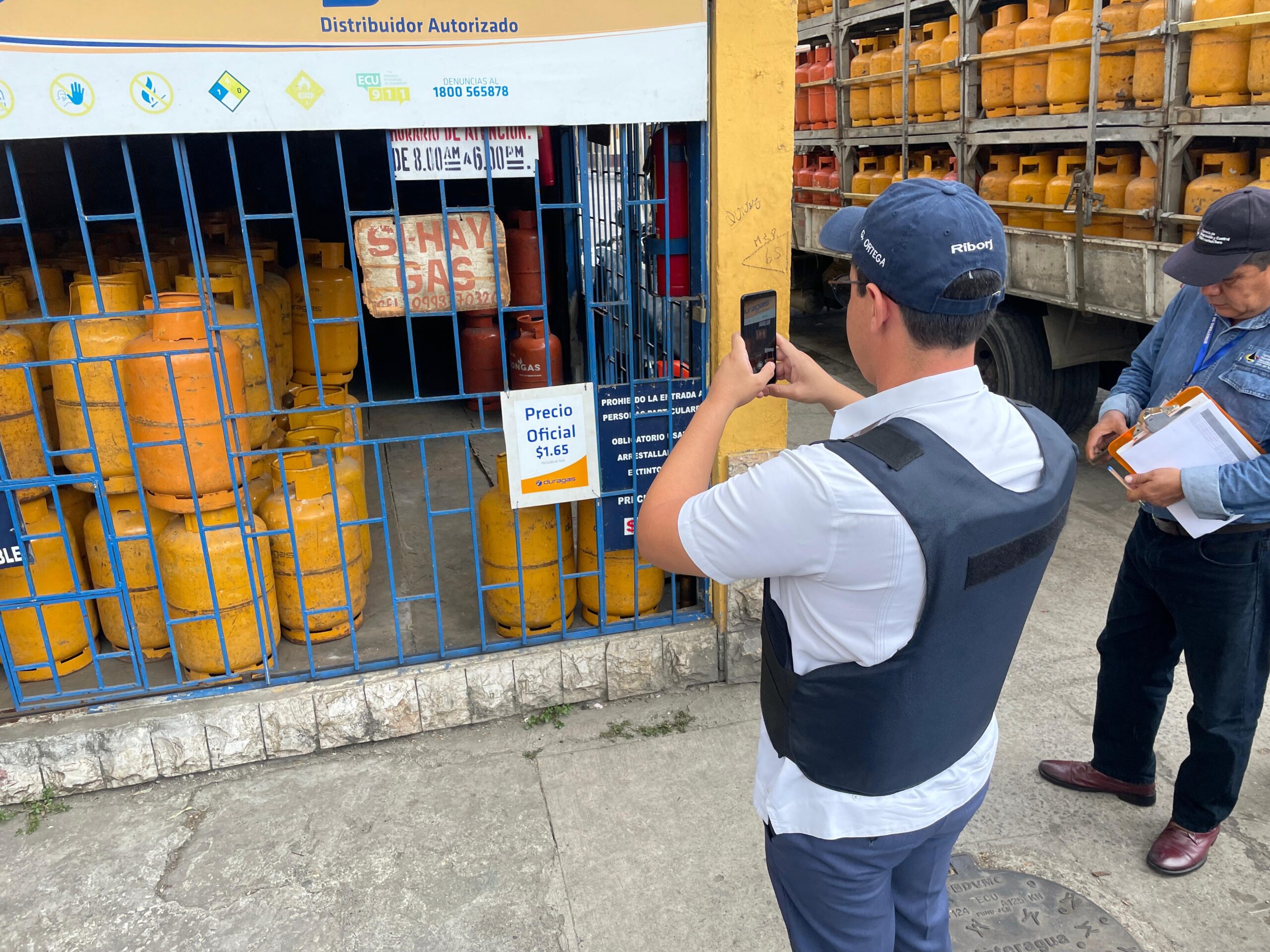 El Intendente de Policía de Guayaquil, Gonzalo Ortega, realizó la mañana del miércoles 10 de abril un recorrido en los depósitos de gas oficiales, donde destacó que el precio oficial es de $1,65 y el valor de venta a domicilio cae en la negociación vendedor y usuario.